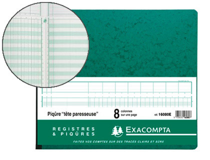 Manifold comptable exacompta piqué tête paresseuse 297x380mm horizontal 35 lignes 80 pages 32 colonnes/2 pages