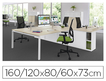 Bureau compact asymétrique eol conect 90 degrés retour à droite 160x120x60cm décor chêne clair sur pieds